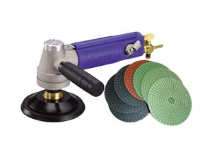This Fabricators' Polishing Kit comes with one air polisher model GPW007 Side Exhaustion, and a set of 4"JX Shine wet diamond polishing pads 8 pcs.
