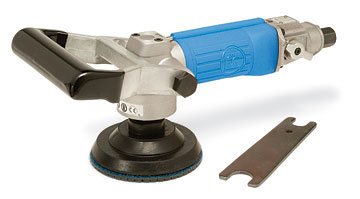 This rear exhaust, pneumatic wet polishing tool is designed for continuous production applications and improved safety. Lightweight and compact, this tool provides the operator with increased comfort and reduced fatigue.